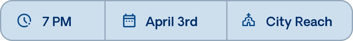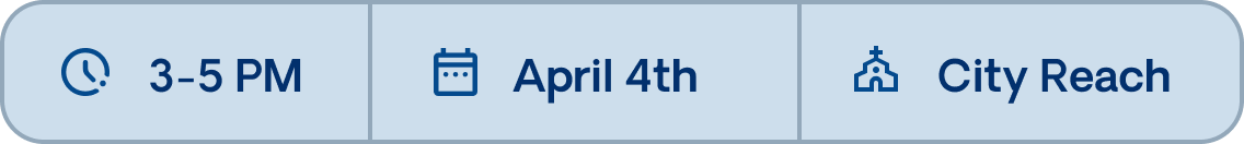 Join us for services at 3P or 5P on Saturday, April 4th! We’re going all out for you and your whole crew with free ice cream and popcorn, a petting zoo, face painting, crafts, and more!